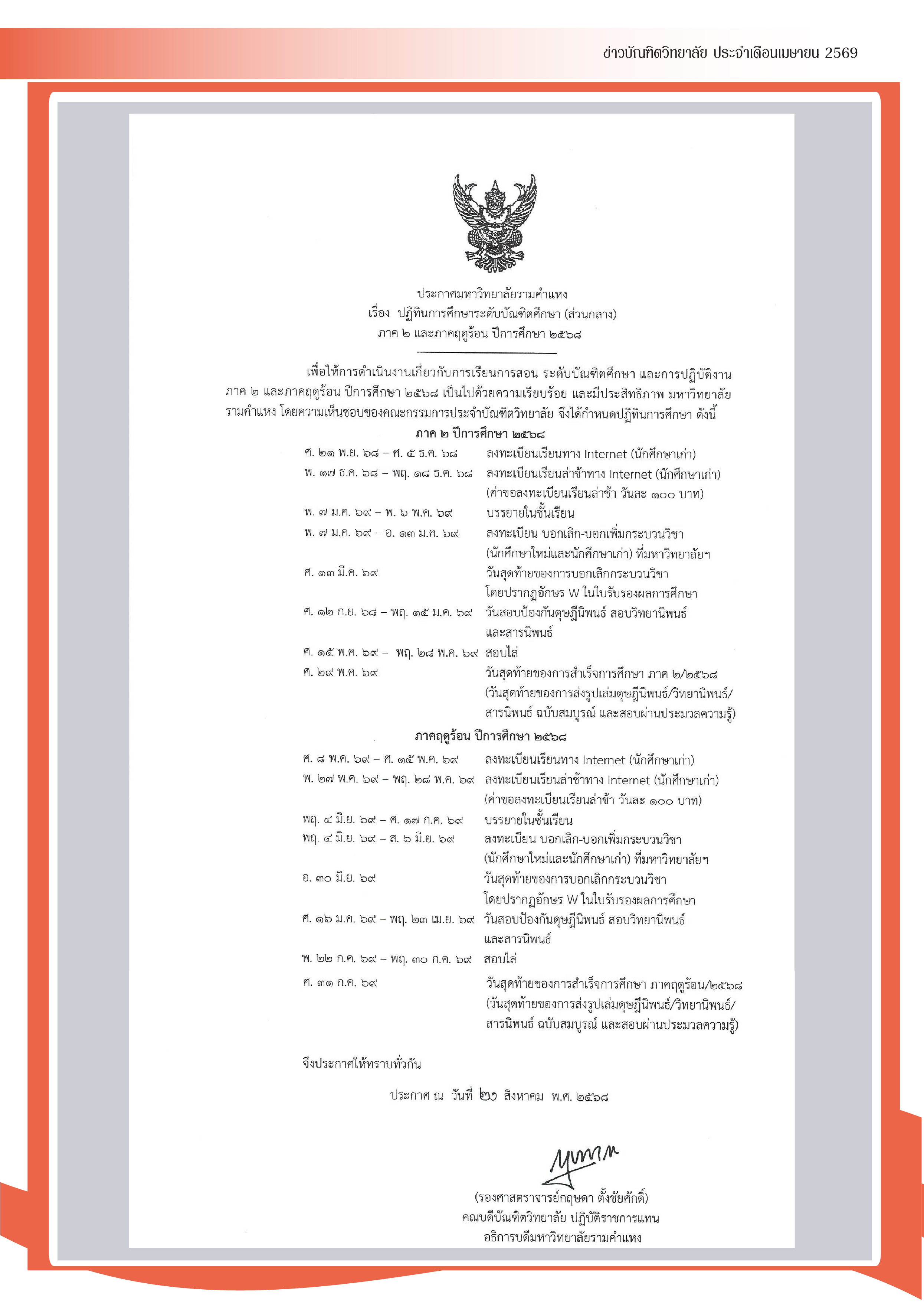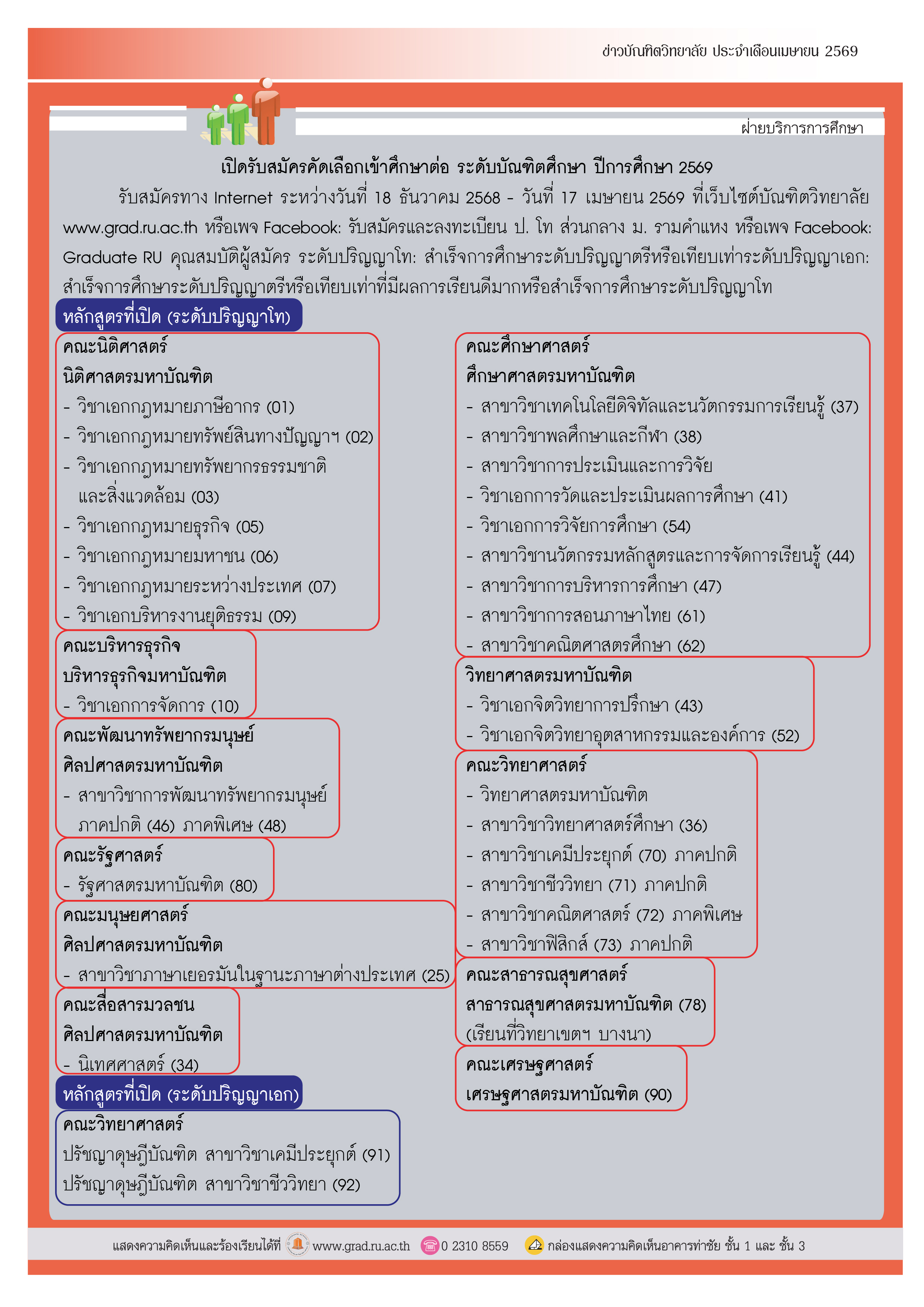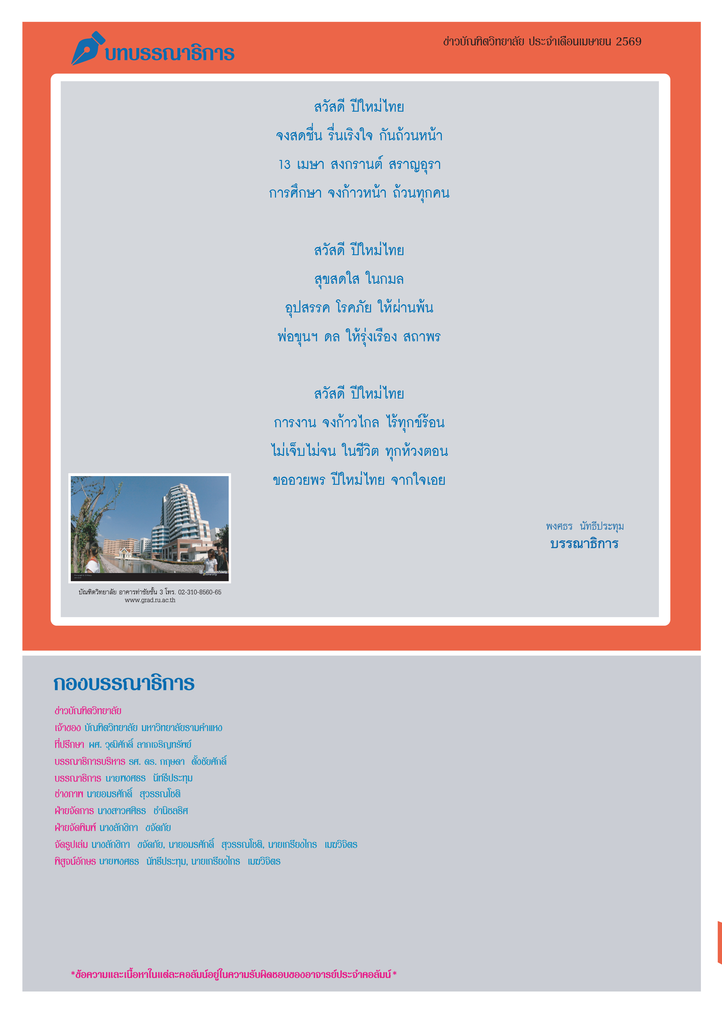 ข่าวบัณฑิตวิทยาลัย มหาวิทยาลัยรามคำแหง ปีที่ 13 ฉบับที่ 4 ประจำเดือนเมษายน 2569