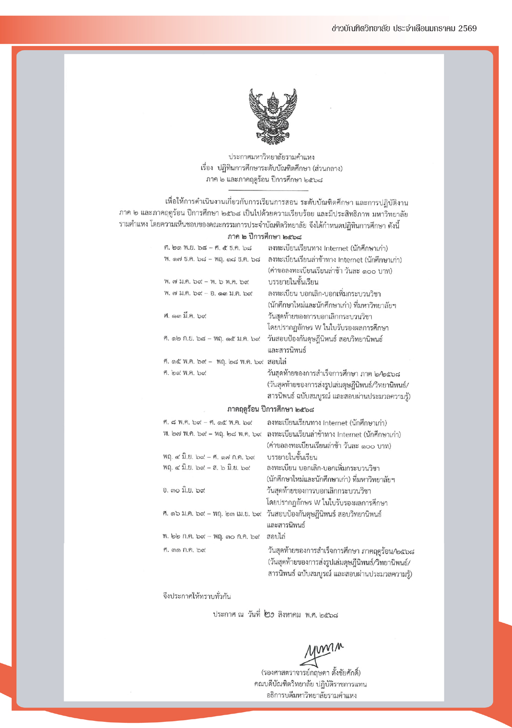 ข่าวบัณฑิตวิทยาลัย มหาวิทยาลัยรามคำแหง ปีที่ 13 ฉบับที่ 1 ประจำเดือนมกราคม 2569