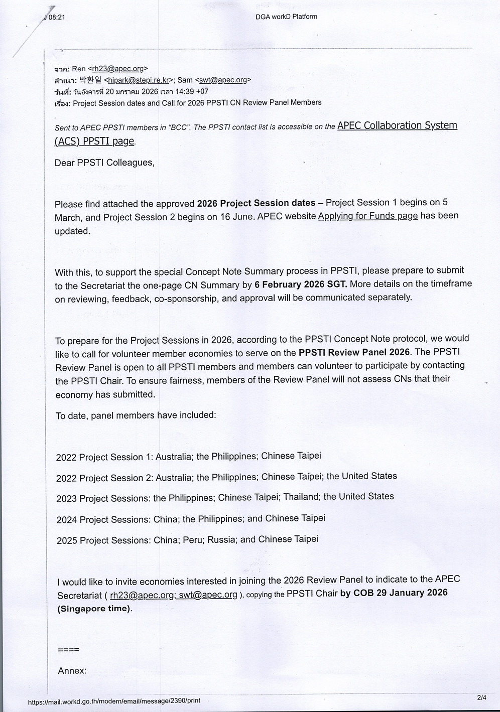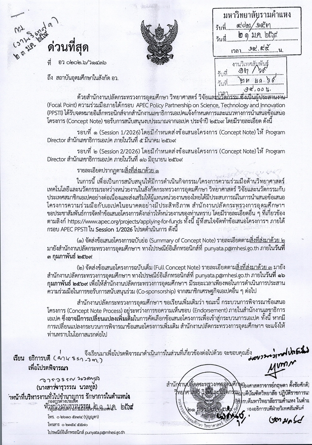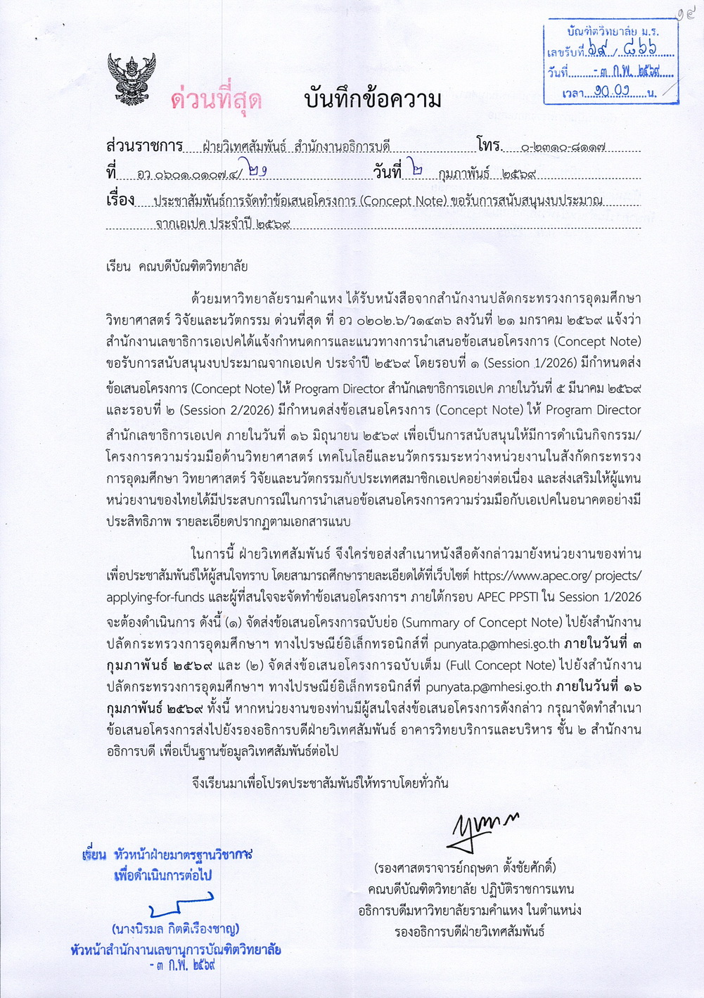ประชาสัมพันธ์การจัดทำข้อเสนอโครงการ (Concept Note) ขอรับการสนับสนุนงบประมาณจากเอเปค ประจำปี 2569