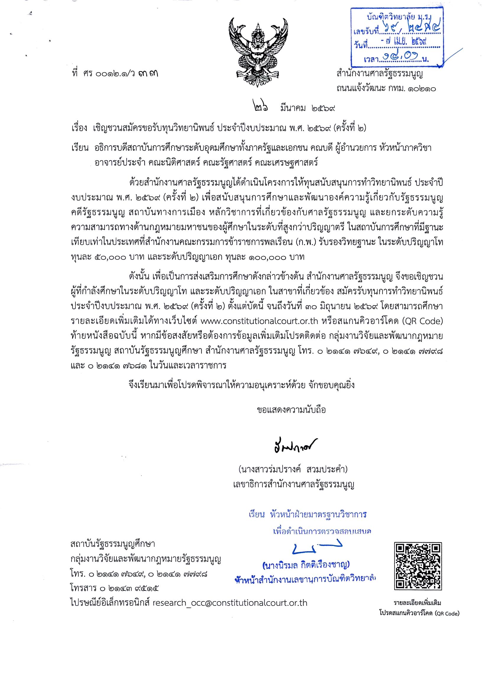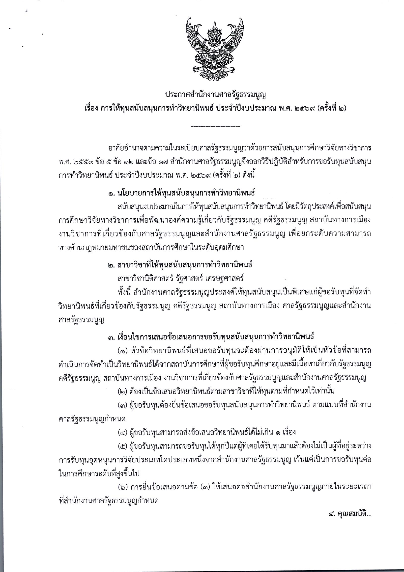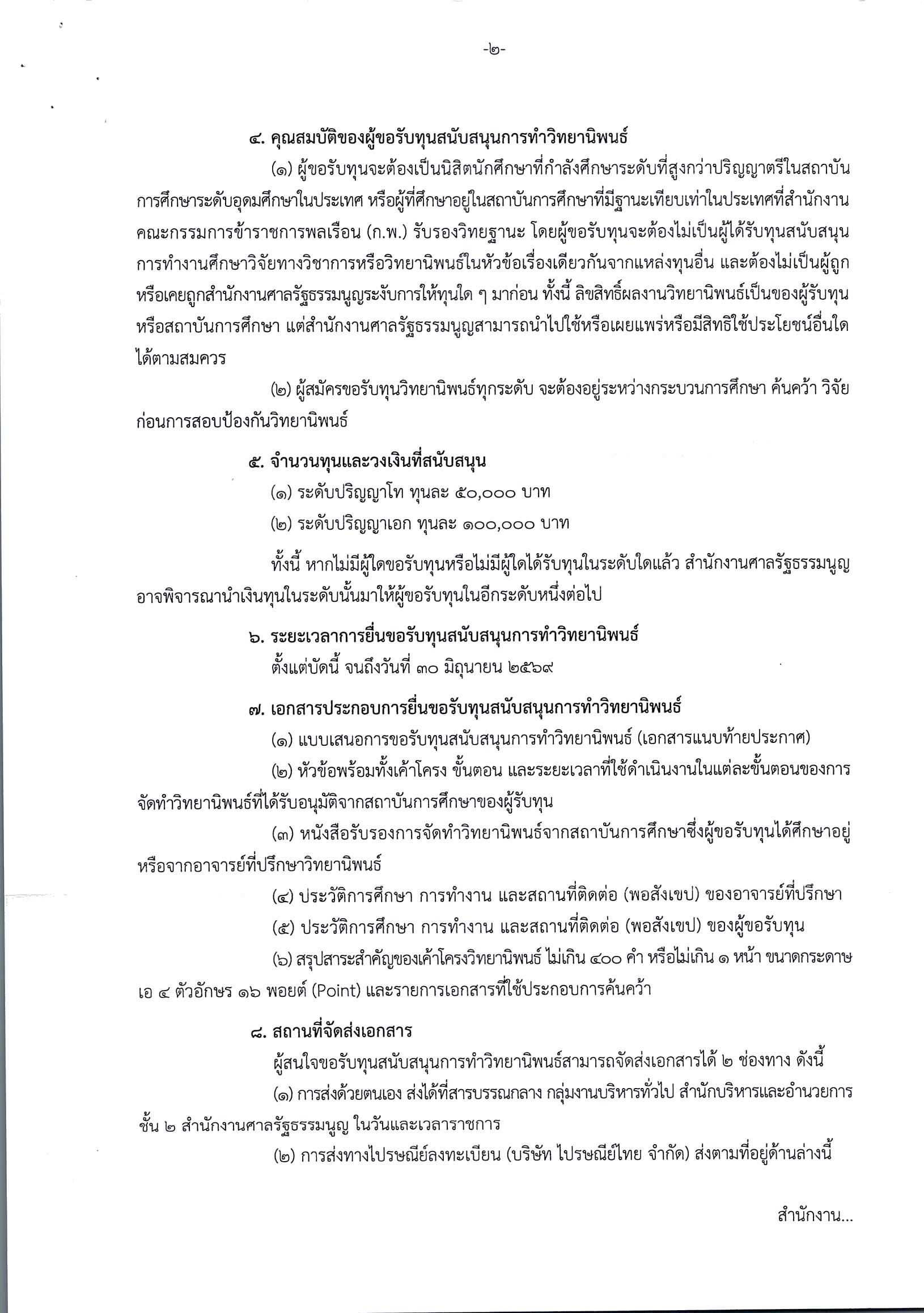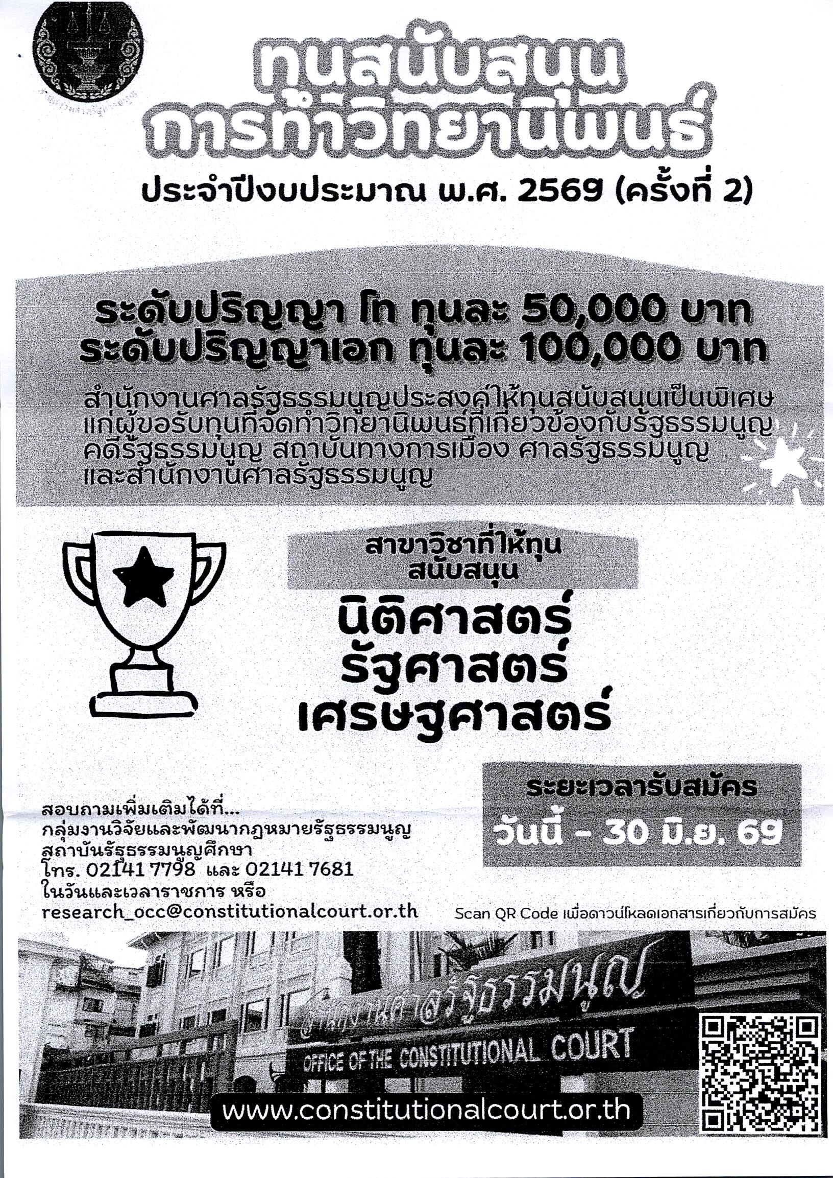 เชิญชวนสมัครขอรับทุนวิทยานิพนธ์ ประจำปีงบประมาณ พ.ศ. 2569 (ครั้งที่ 2)
