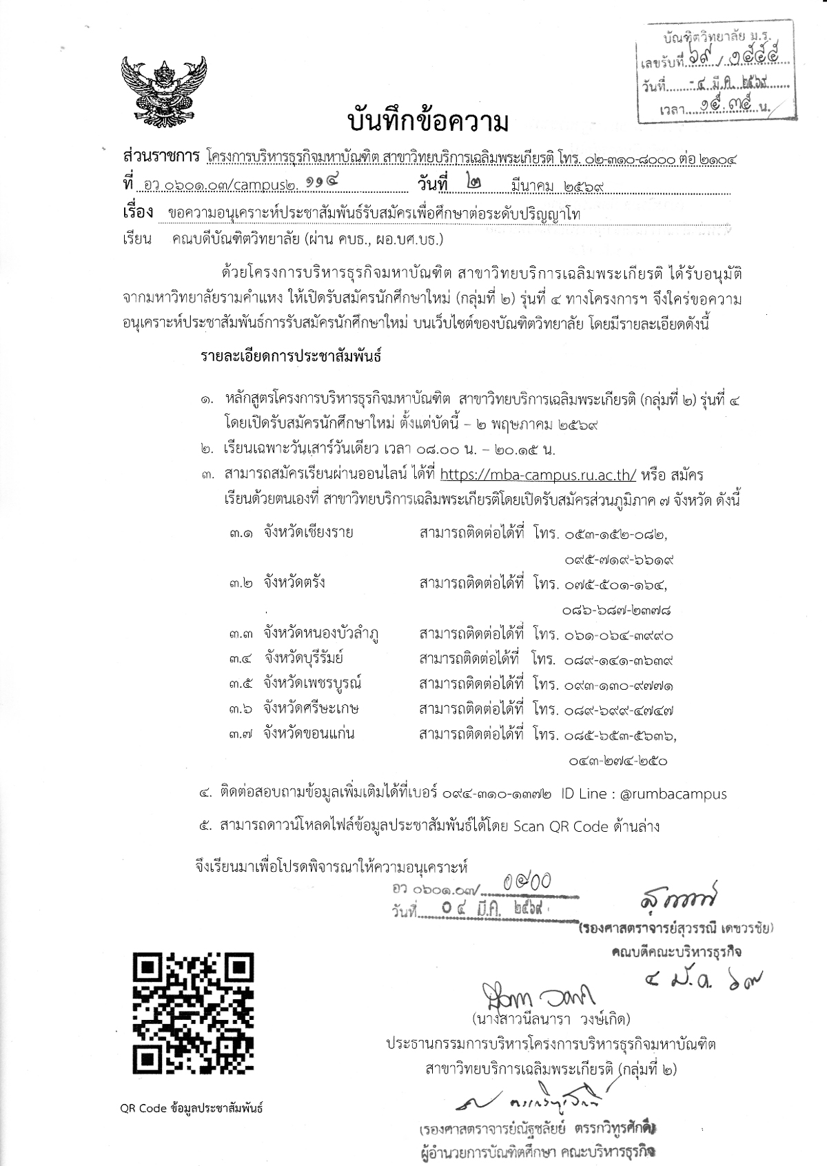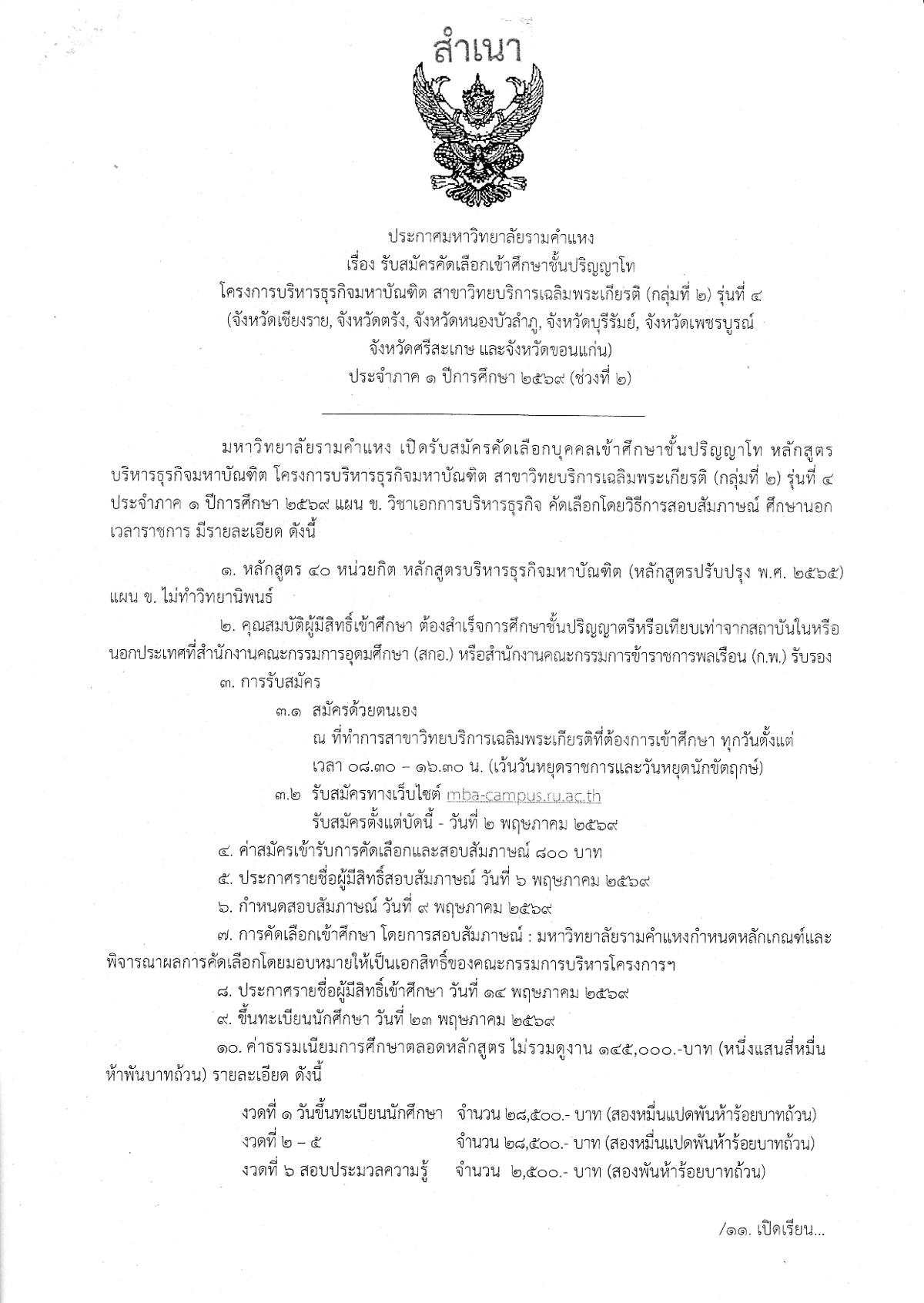 ประชาสัมพันธ์รับสมัครนักศึกษาใหม่ โครงการบริหารธุรกิจมหาบัณฑิต สาขาวิทยบริการเฉลิมพระเกียรติ (กลุ่มที่ 2) รุ่นที่ 4