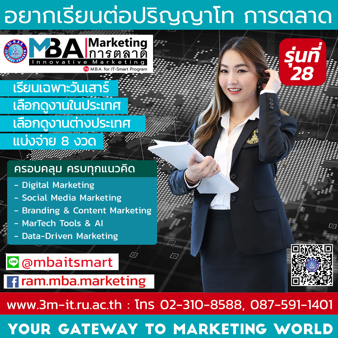 ขยายเวลาการเปิดรับสมัครนักศึกษาใหม่โครงการพิเศษหลักสูตรบริหารธุรกิจมหาบัณฑิต (M.B.A. for IT-Smart Program) รุ่นที่ 28