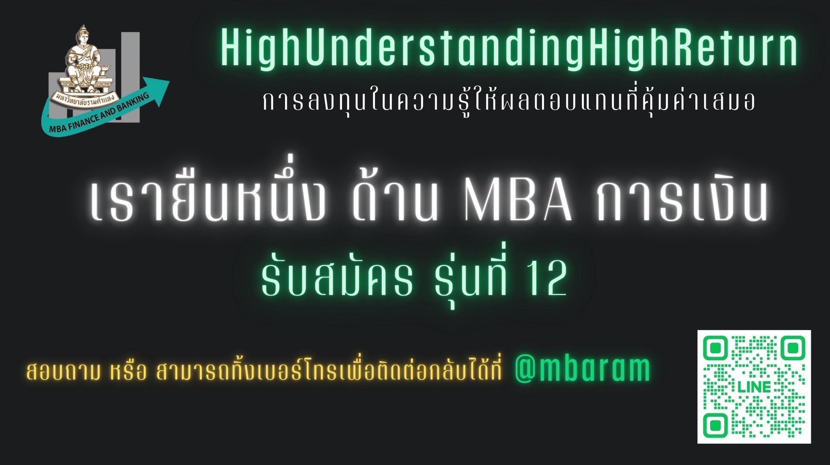ประกาศรับสมัครนักศึกษาปริญญาโท โครงการบริหารธุรกิจมหาบัณฑิต สาขาวิชาการจัดการการเงินและการธนาคาร รุ่นที่ 12 (ช่วง 2)