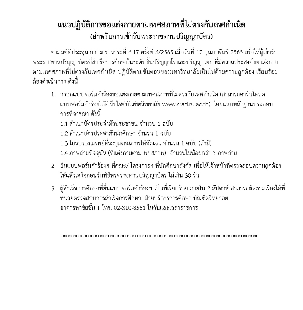 Download แบบฟอร์มหนังสือขอแต่งกายตามเพศสภาพ
