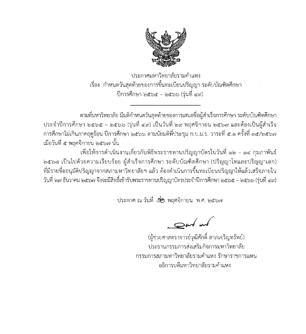 ประกาศรายชื่อดุษฎีบัณฑิตและมหาบัณฑิต ที่เข้ารับพระราชทานปริญญาบัตร รุ่นที่ 49